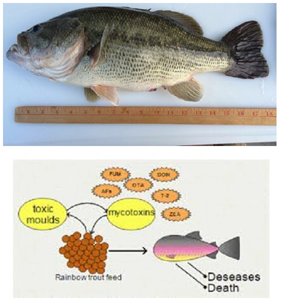 • Fishes: Mycotoxins like zearalenone disrupt endocrine function, leading to poor spawning rates and reduced egg viability.