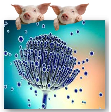 Environmental mycotoxins, like aflatoxins and ochratoxins, contaminate feed grains and can lead to reduced feed intake, poor growth, and immune suppression.Comprehensive approaches to mitigate the toxic impact of mycotoxins, safeguarding swine health and performance.